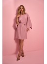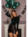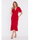 - Waist: strongly defined with a wide waistband and shaping drape.