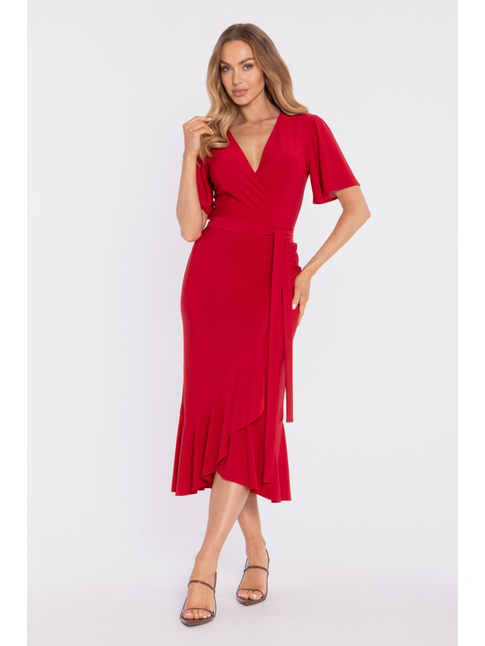 - Style: elegant fitted maxi dress with figure-enhancing draping.