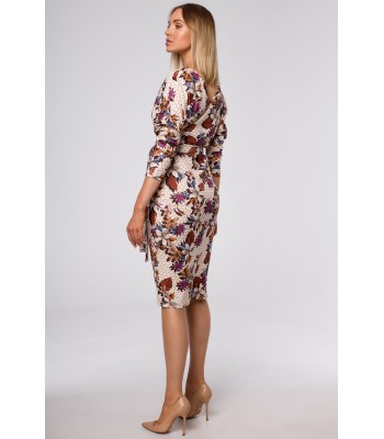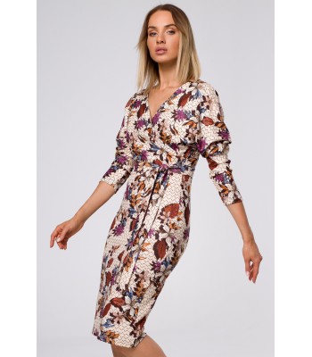 Fitted pencil skirt, relaxed wrap top with long sleeves and a strap to finish off the effect. This multicolor print dress is sensual and comfortable thanks to elastic ebbed knit fabric.