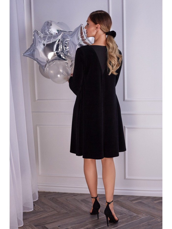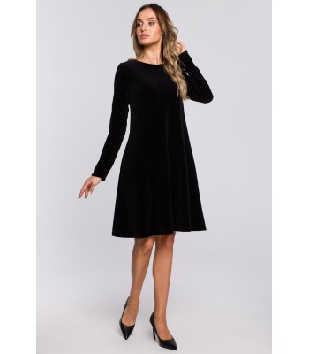It is practical and it is chic! Relaxed fit cut of this long-sleeved shift cut in soft velvet fabric makes it an all occasion dress.