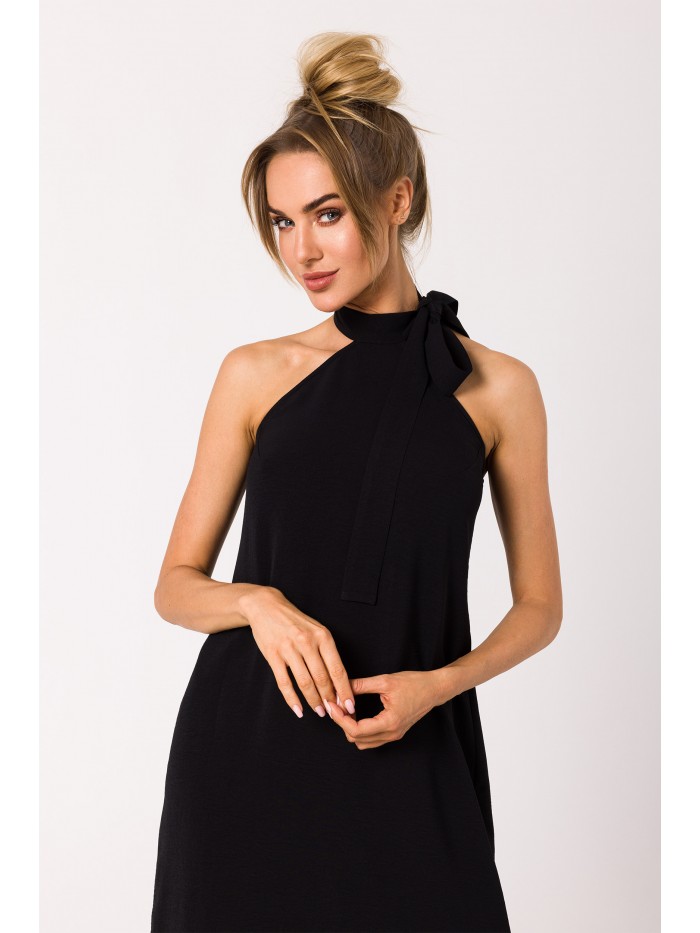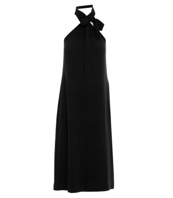 Flattering halter neck finished with a tie detail gives this simple midi summer dress a chic look.