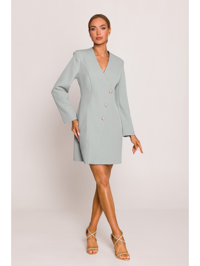 Clear lines - pencil dress with a V-shaped neckline with cut-outs. It’s soft office style in it’s clearest form.