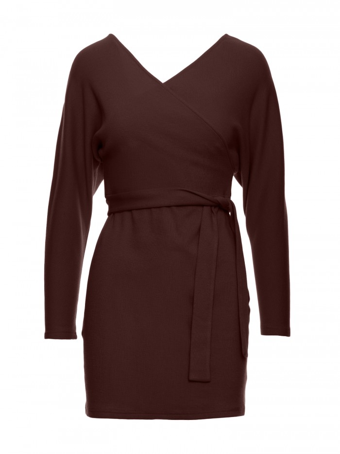 Wrap halter neck dress enhanced with a shawl collar. Tie it around the waist or on the side.