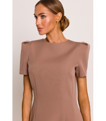 Clear lines - pencil dress with a V-shaped neckline with cut-outs. It’s soft office style in it’s clearest form.