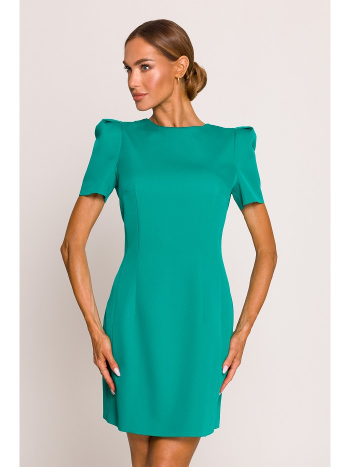 Polished and professional, this midi length dress with an inverted pleat catches the eye to a slim waist with its fitted bodice and trapeze dress.