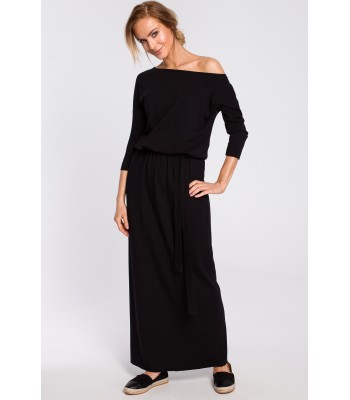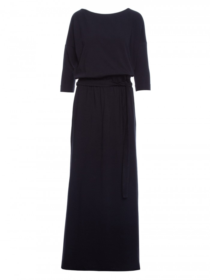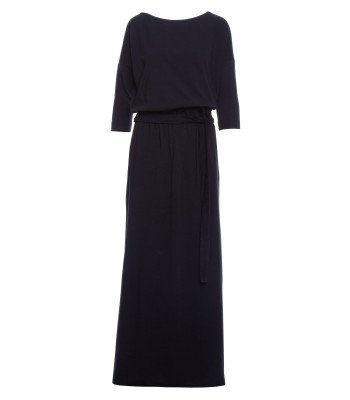 Maximum comfort and fashionable look can go together. This effortless maxi dress, with a blousy bodice adjusted with a tie-belt that cinches waist, has it all.