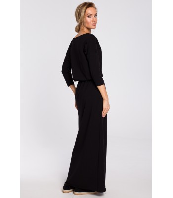 A kimono top jumpsuit with sleek, straight-leg trousers. Plain and simple but at the same time extremely elegant every day or evening look.