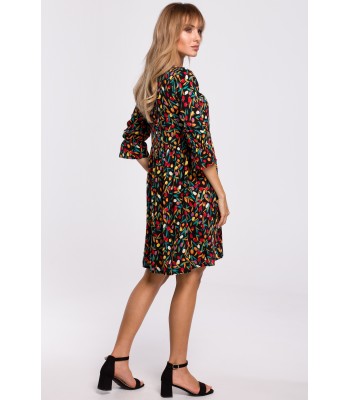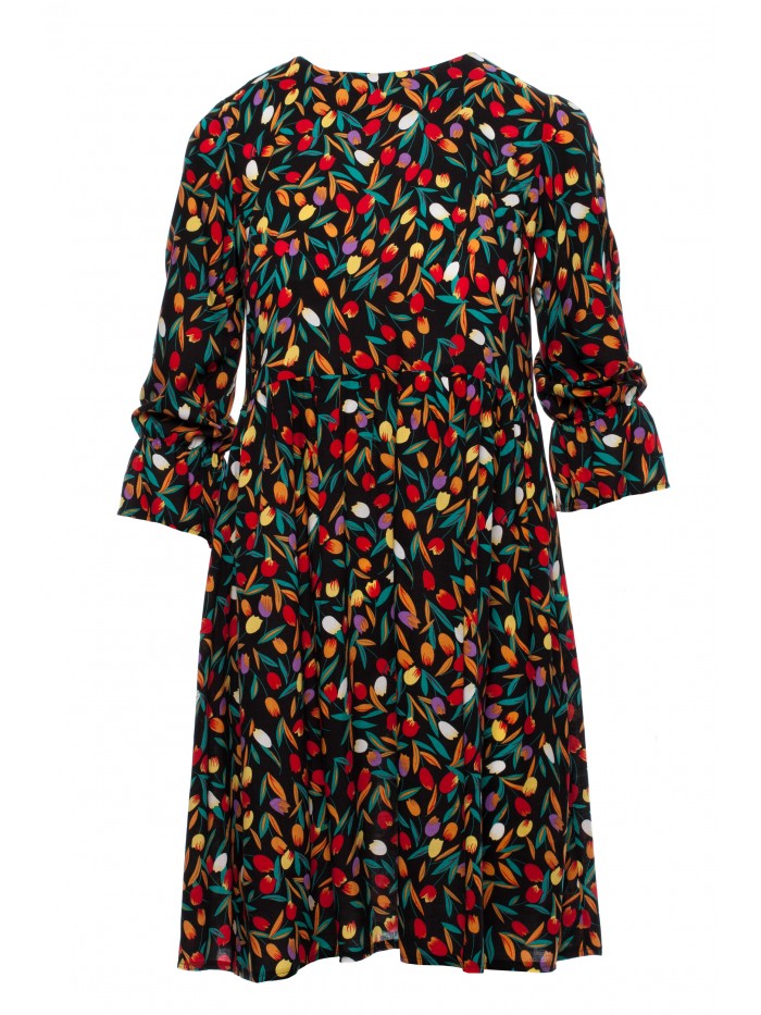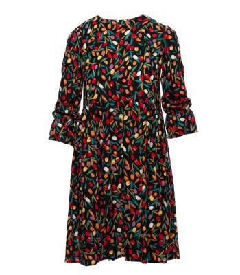 This simple summer dress has original sleeves with frilled hem and gathered waist.