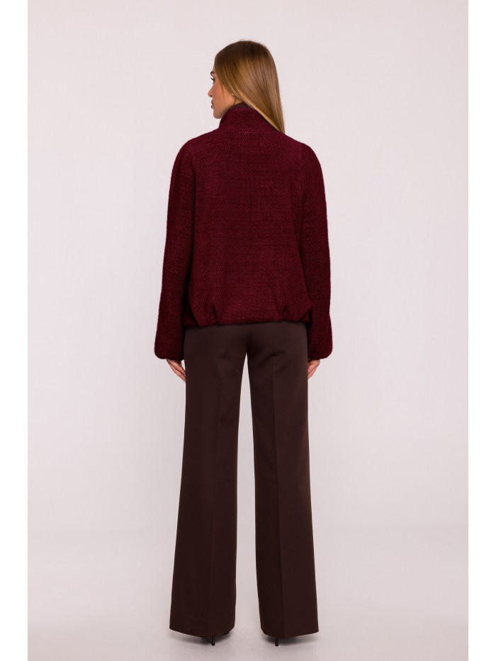 Office jacket with a peaked collar and a single-button closure. Flap pockets at the front. Long sleeves with buttons. Padded shoulders. Back vent. Fully lined.