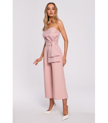 Break the stereotypes and show off your individuality. With an occasion jumpsuit like this you will rock the party! Effective strapless bodice with a bow and a tie belt that cinches your waist flatter your silhouette, wide mid-calf length legs accentuate the original character of the outfit.