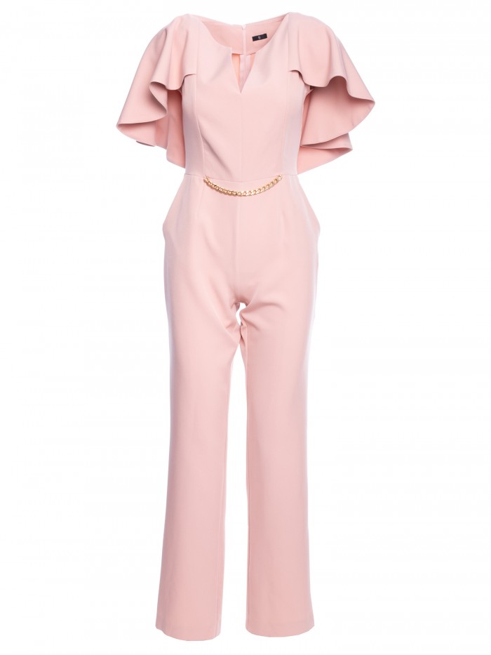 Play with details, this one-pice jumpsuit with a cape effect in the back and a chain in the front is bound to grasp attention.