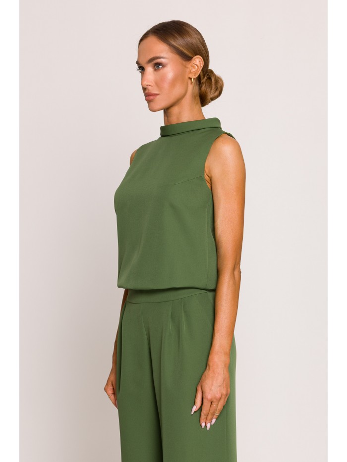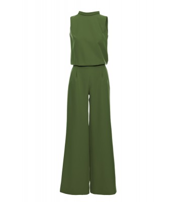 Elevate your evening look to glamorous heights in this sleeveless jumpsuit featuring flared legs, a rolled up neck and daring split back.