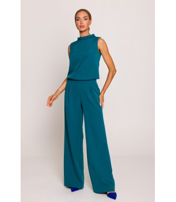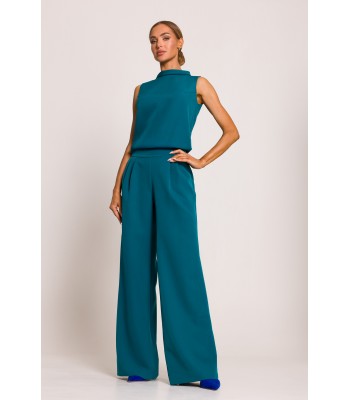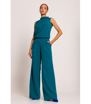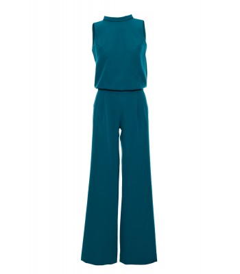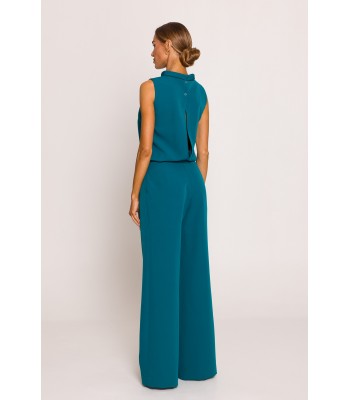 Elevate your evening look to glamorous heights in this sleeveless jumpsuit featuring flared legs, a rolled up neck and daring split back.