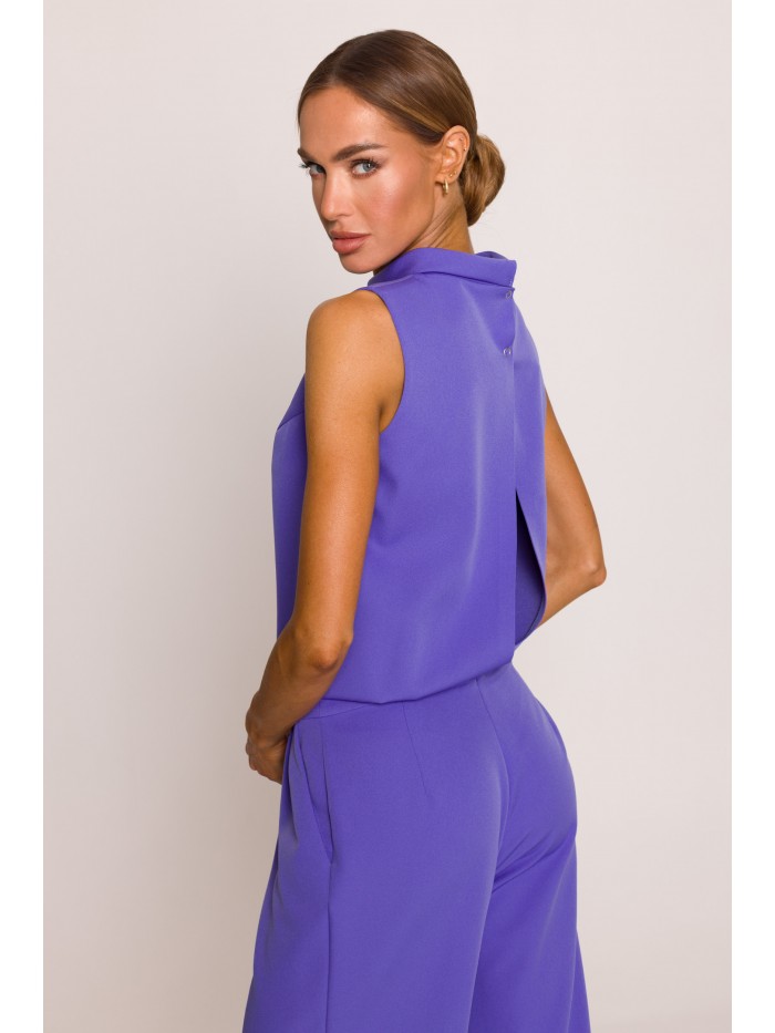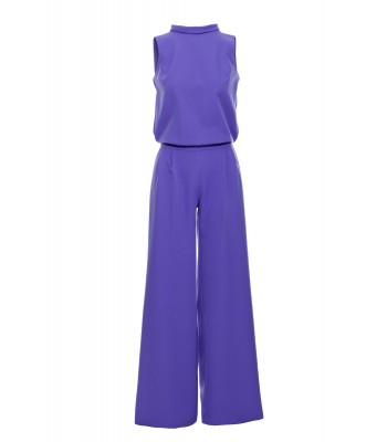 Elevate your evening look to glamorous heights in this sleeveless jumpsuit featuring flared legs, a rolled up neck and daring split back.
