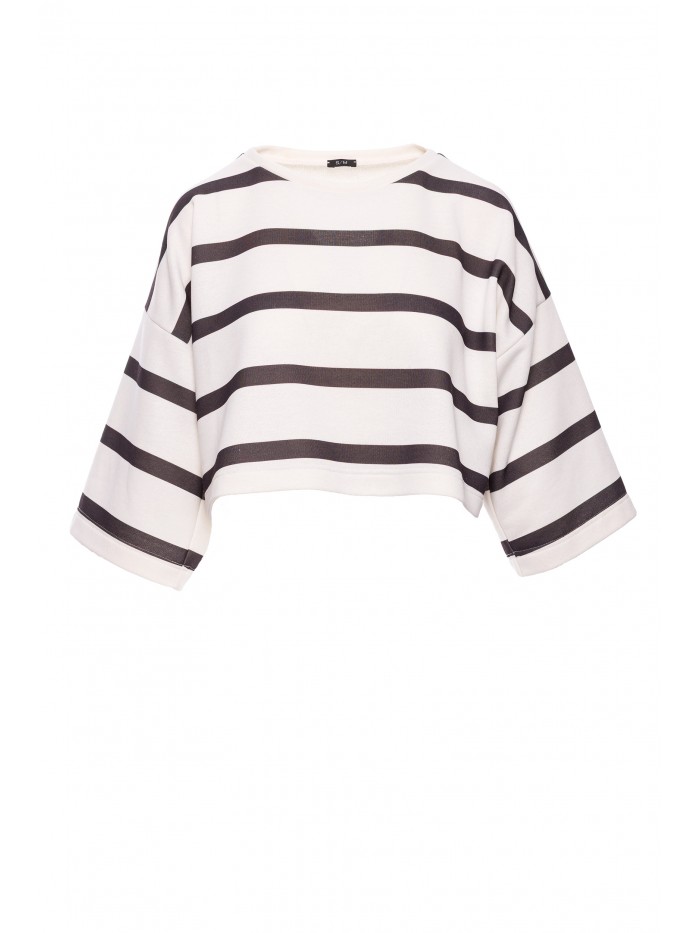 Wygodny i niekrępujący ruchów a zarazem elegancki kombinezon z luźniejszą górą, krótkimi rękawami i prostymi nogawkami z zaszewkami przy pasku. Na co dzień i od święta.
