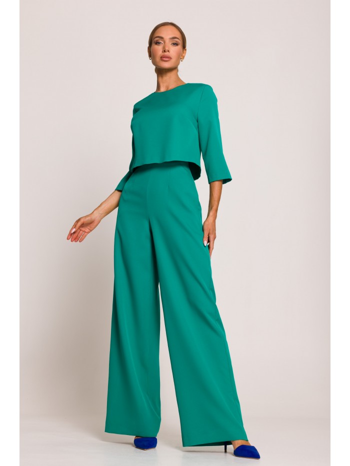 Kombinezon wszedł już na dobre do garderoby dedykowanej na specjalne okazje. Nasz fantastyczny kombinezon z eleganckimi szerokimi nogawkami idealnie nadaje się na wielkie wyjścia dzięki wyjątkowej górze z wywijaną stójką i ozdobnym zapięciem na ramieniu oraz podwójnym, dekoracyjnym przodem.