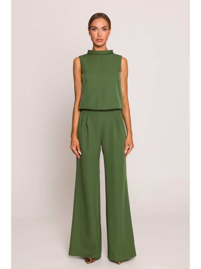 Elegancki i minimalistyczny, kombinezon z prostymi nogawkami i dopasowaną górą, która kończy się stójką. Dzięki swojej prostocie łączy się różnymi dodatkami i pasuje na wszelkie okazje jak i na co dzień do pracy.