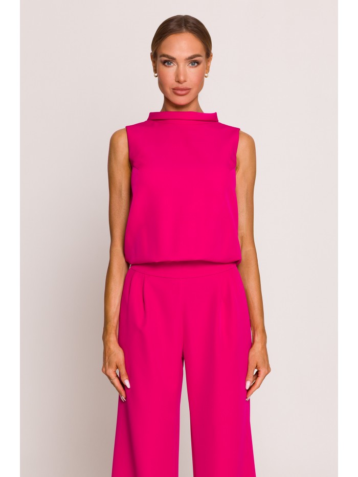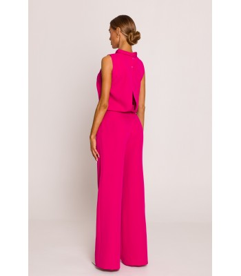 Szybka, pełna stylizacja to jednoczęściowy kombinezon bez rękawów, z szerokimi nogawkami 7/8 - idealnie pasujący do tenisówek jak i sandałów na obcasie, z paskiem z klamrą, który podkreśli talię i będzie wyjątkowym eleganckim wykończeniem.
