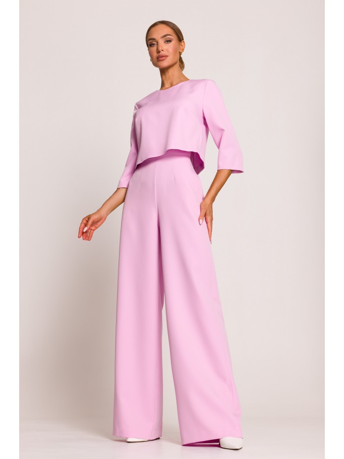 Przełam stereotypy i wyraź się poprzez swój strój! Ten kombinezon ma tę moc! Efektowna gorsetowa góra z mocnymi detalami takimi jak: drapowana kokarda i pasek wiązany wokół talii, a do tego szerokie nogawki długości 7/8 podkreślą Twój indywidualny styl.