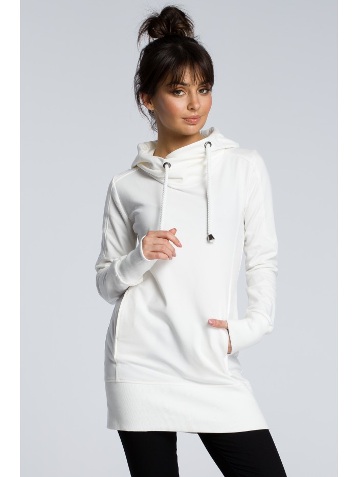 Tunika jak bluza z wysokim kołnierzem z przodu ściąganym sznurem w kontrastowym kolorze i z kapturem. Noś jak chcesz - do jeansów, czy legginsów lub jako mini sukienka.