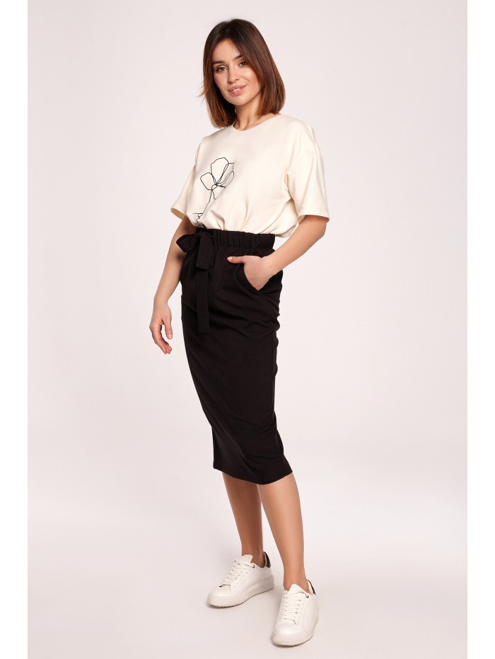 Połączenie sportowego stylu z ołówkowym krojem - to spódnica do zadań specjalnych! Będzie wyglądać świetnie z lekkimi koszulkami z krótkim rękawem, czy bluzami jak i z eleganckimi bluzkami w stylu biznesowym.