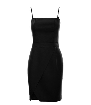 Prosta, a zarazem szykowna sukienka mini z efektownym głębokim dekoltem i na cienkich ramiączkach.