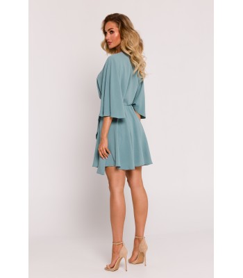 Sukienka z dzianiny o długości midi. Odcinana w pasie z podwyższoną talią i luźną spódnicą, optycznie zwęża talię, a dzięki prostemu krojowi dodatkowo wysmukla całą sylwetkę. Posiada charakterystyczne, bardzo krótkie rękawki oraz zabudowany dekolt. Świetnie sprawdzi się zarówno na co dzień, jak i jako sukienka wizytowa.