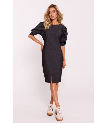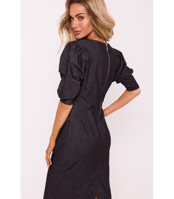 Urocza sukienka z krótkimi rękawami i obniżoną talią z kontrafałdami w dolnej części. Dziewczęca elegancja.