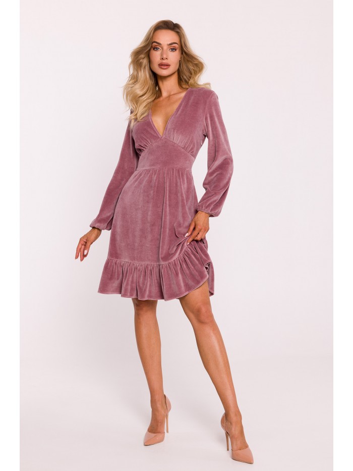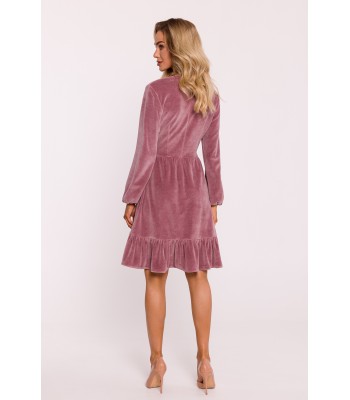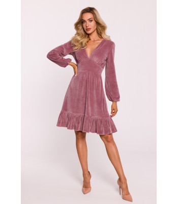 Urocza sukienka z krótkimi rękawami i obniżoną talią z kontrafałdami w dolnej części. Dziewczęca elegancja.