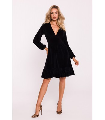 Ta sukienka o kroju litery A, długich rękawach wykończona oryginalnym brzegiem to prostota i elegancja w najlepszym stylu.