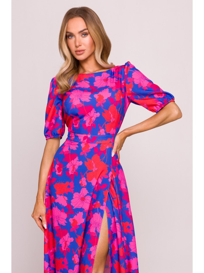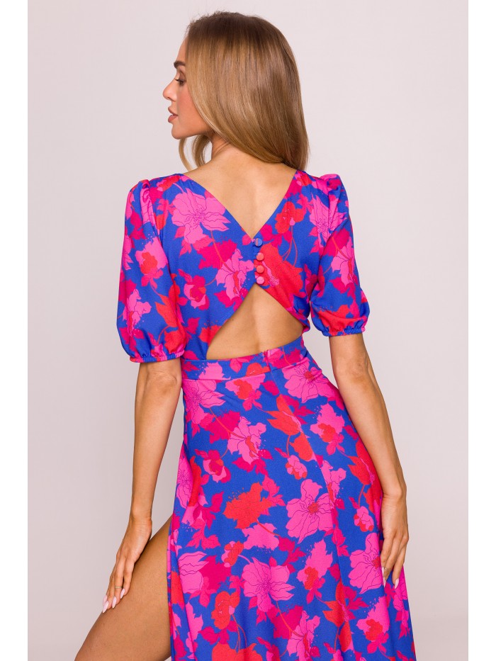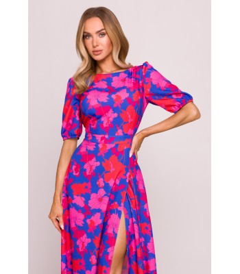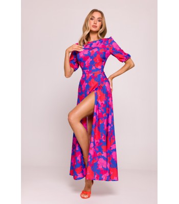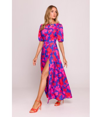 Elegancka i wygodna sukienka z dzianiny w trzech różnych wariantach nadruku. Dopasowany dół sukienki łączy się ze zmysłową, luźniejszą górą kopertową a w talii przewiązana jest paskiem z tego samego materiału.