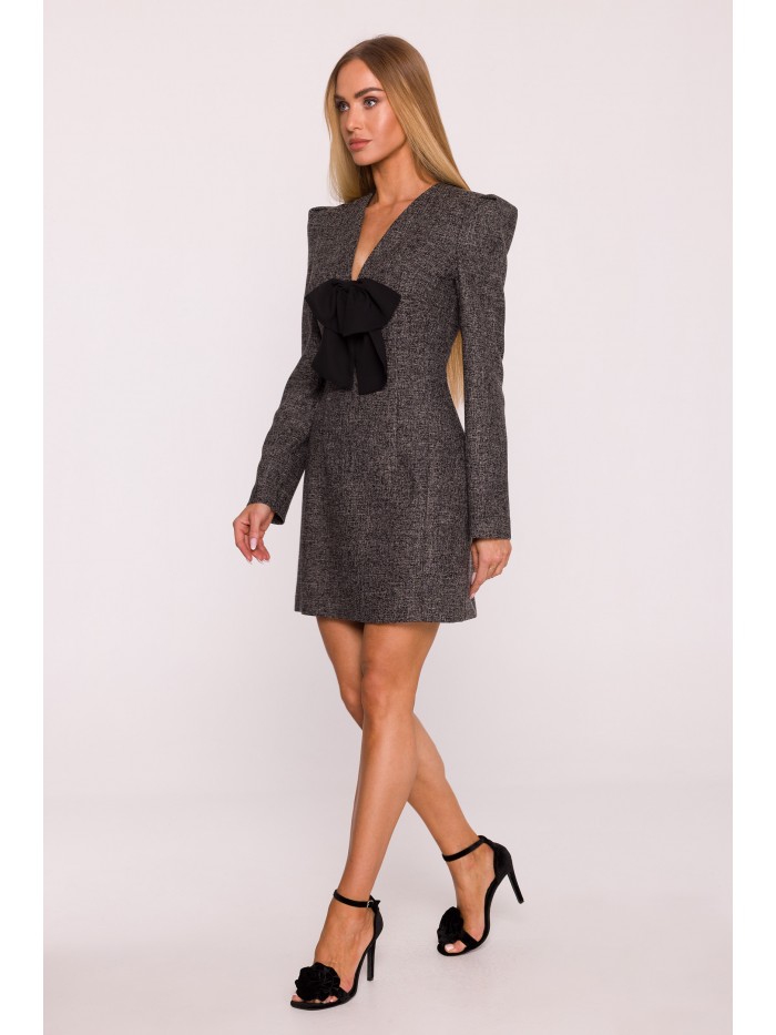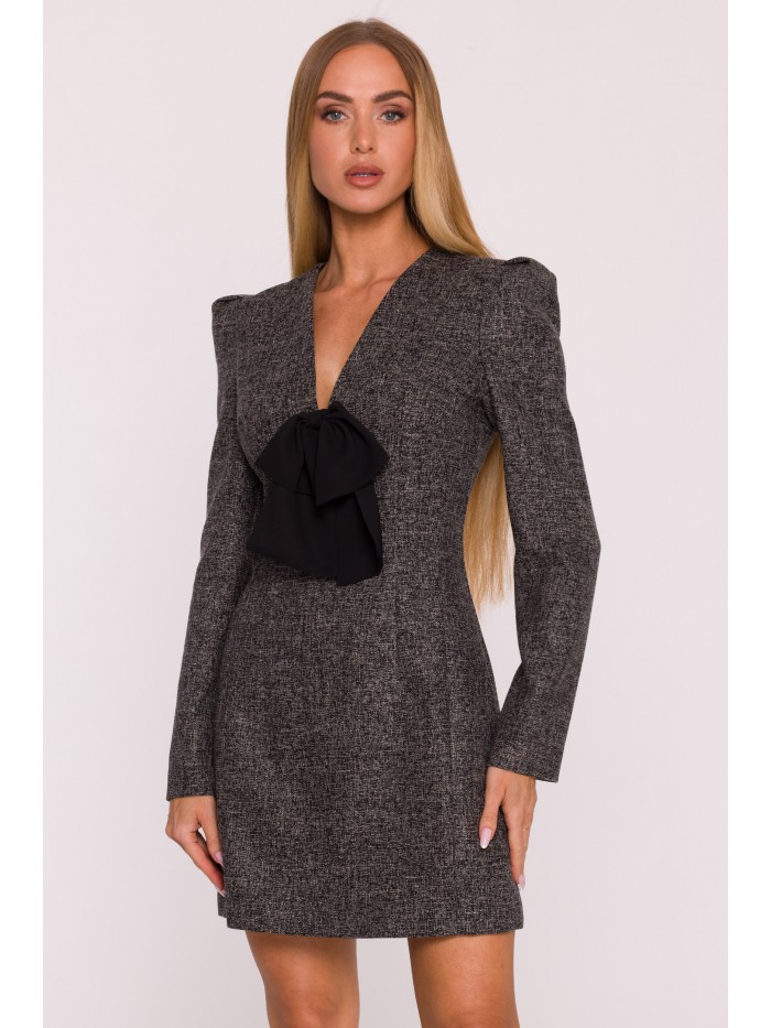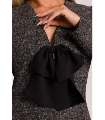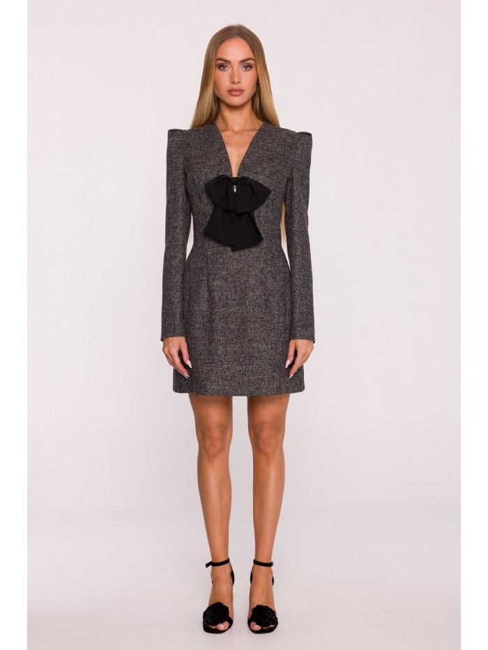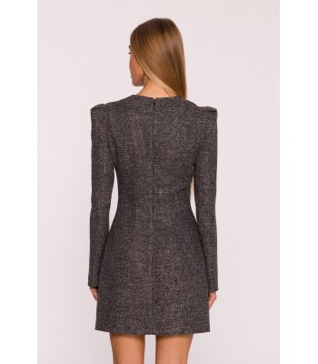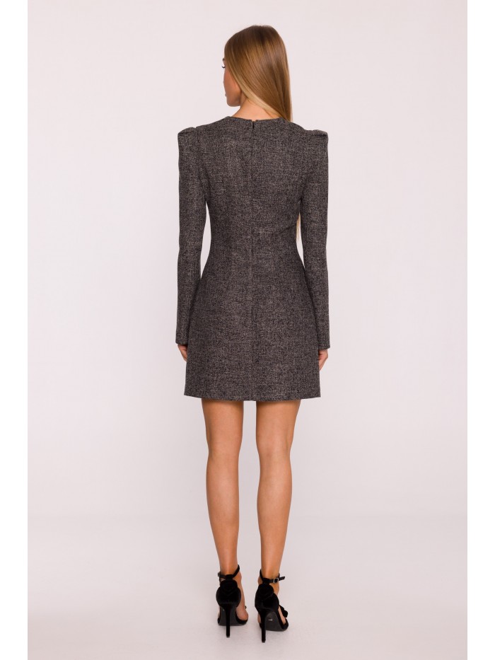 Sukienka z dzianiny o długości midi. Odcinana w pasie z podwyższoną talią i luźną spódnicą, optycznie zwęża talię, a dzięki prostemu krojowi dodatkowo wysmukla całą sylwetkę. Posiada charakterystyczne, bardzo krótkie rękawki oraz zabudowany dekolt. Świetnie sprawdzi się zarówno na co dzień, jak i jako sukienka wizytowa.