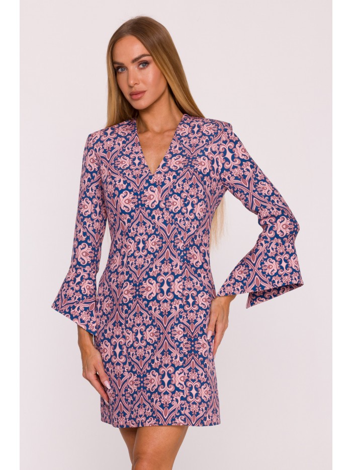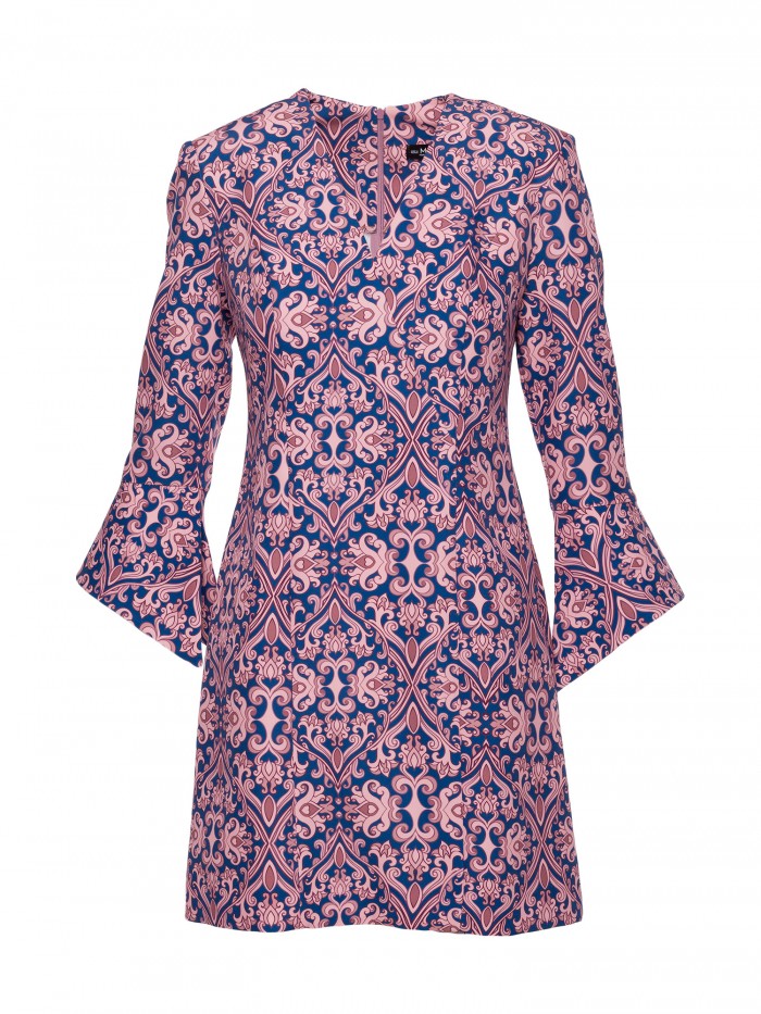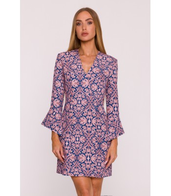 Urocza sukienka z krótkimi rękawami i obniżoną talią z kontrafałdami w dolnej części. Dziewczęca elegancja.