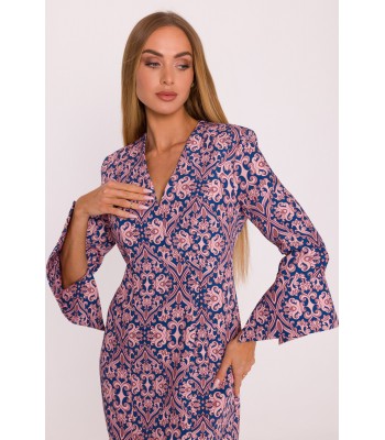 Wygodny i niekrępujący ruchów a zarazem elegancki kombinezon z luźniejszą górą, krótkimi rękawami i prostymi nogawkami z zaszewkami przy pasku. Na co dzień i od święta.