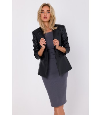 Ten klasyczny żakiet o kobiecym, taliowanym kroju oprócz klasycznego kołnierza posiada naszyte pod ukosem kieszenie z klapkami dla przełamania konwenansów. Dzięki temu świetnie komponuje się nie tylko w zestawieniu z eleganckimi spodniami, ale również z modnymi dzwonami, czy po prostu z jeansami.