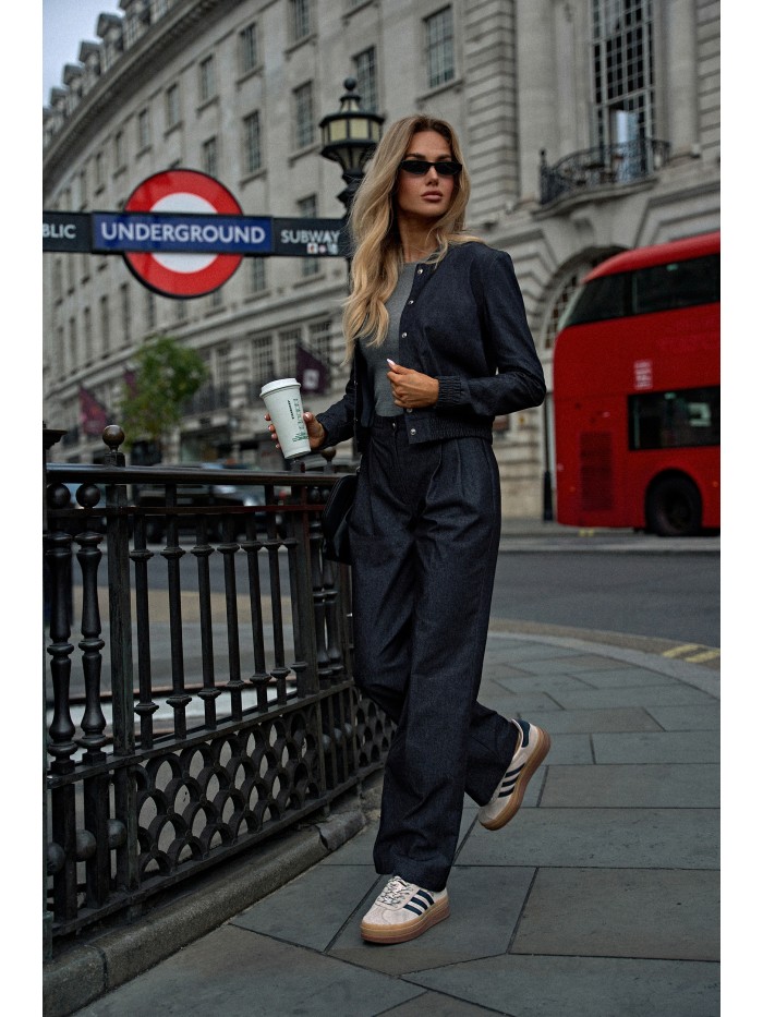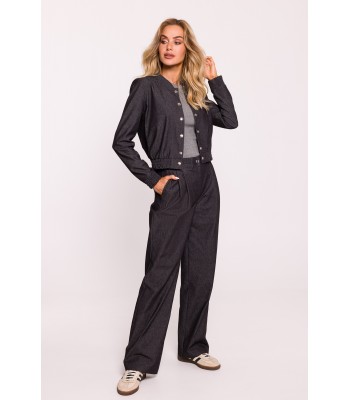 Ten klasyczny żakiet o kobiecym, taliowanym kroju oprócz klasycznego kołnierza posiada naszyte pod ukosem kieszenie z klapkami dla przełamania konwenansów. Dzięki temu świetnie komponuje się nie tylko w zestawieniu z eleganckimi spodniami, ale również z modnymi dzwonami, czy po prostu z jeansami.