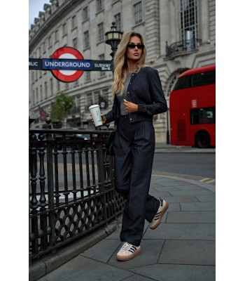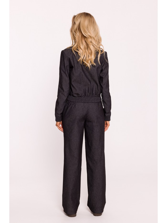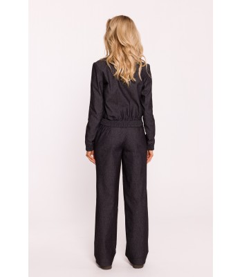 Elegancki i minimalistyczny, kombinezon z prostymi nogawkami i dopasowaną górą, która kończy się stójką. Dzięki swojej prostocie łączy się różnymi dodatkami i pasuje na wszelkie okazje jak i na co dzień do pracy.