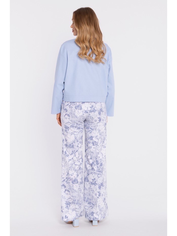Ten klasyczny żakiet o kobiecym, taliowanym kroju oprócz klasycznego kołnierza posiada naszyte pod ukosem kieszenie z klapkami dla przełamania konwenansów. Dzięki temu świetnie komponuje się nie tylko w zestawieniu z eleganckimi spodniami, ale również z modnymi dzwonami, czy po prostu z jeansami.